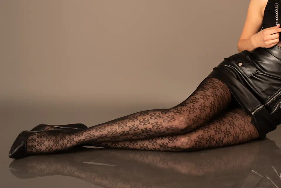 Rajstopy wzorzyste typu t-band z komfortowym ściągaczem oraz płaskim szwem. Wzorzysta część palcowa.