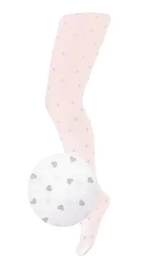 Rajstopy dziewczęce z mikrofibry ozdobione delikatnym wzorem w srebrne lub białe kropki. Skład: 94% poliamid, 6% elastan.