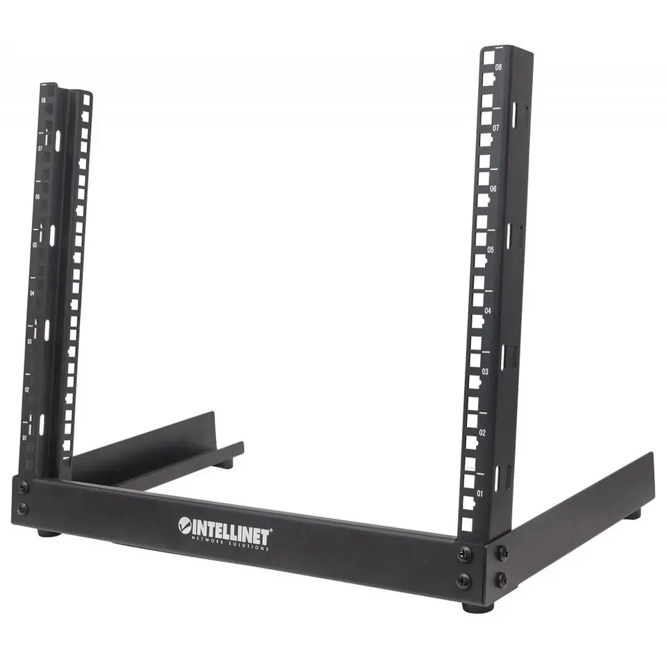 | Cechy: | Materiał wykonania: stal o grubości 2 mm, Wysokość montażowa 12U, Numeracja na ramie rack ułatwiająca montaż urządzeń |