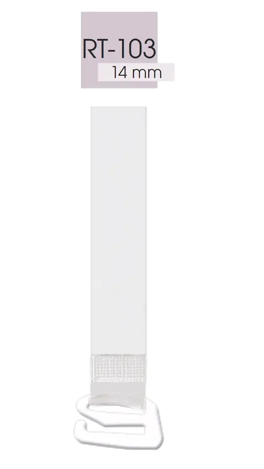 Silikonowe, przezroczyste ramiączka o szerokości 14 mm. Zgrzewane, co jest gwarancją wytrzymałości łączenia zaczepu z taśmą. Zaczep metalowy, biały.