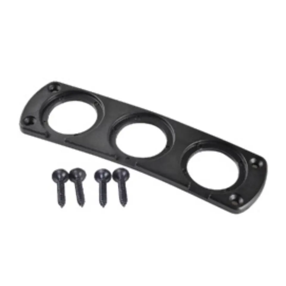 Płaska osłona panelowa z łukowatymi boczkami do montażu woltomierza okrągłego, ładowarki USB lub gniazda zapalniczki. Ramka umożliwia montaż 3 podzespołów równocześnie. Specyfikacja: Wymiary: 151x43x4.5 mm Otwory: 30mm Kolor: czarny Montaż: 4 otwory montażowe 3.5mm