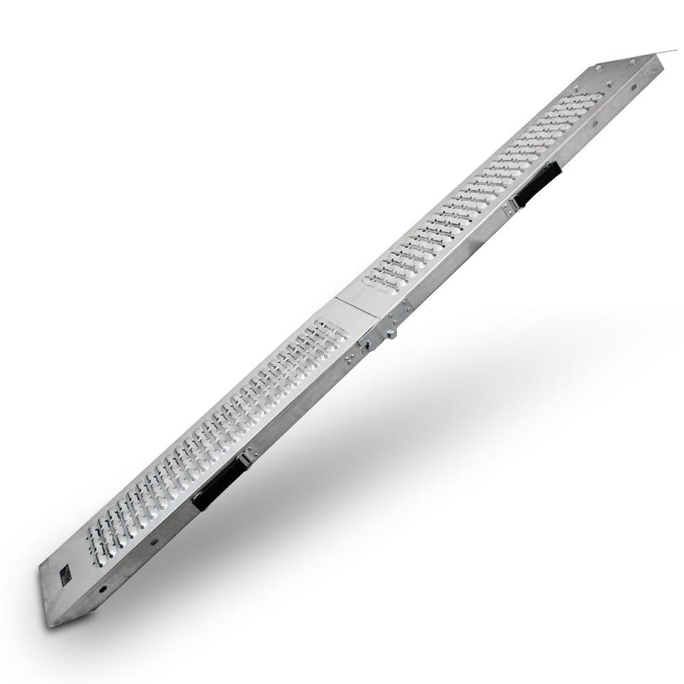 Solidna rampa wykonana ze stali z otworami antypoślizgowymi zapewnia bezpieczny załadunek motocykli, kosiarek, skuterów oraz sprzętu budowlanego. Dzięki składanej konstrukcji łatwo ją transportować oraz przechowywać nawet w ograniczonej przestrzeni.