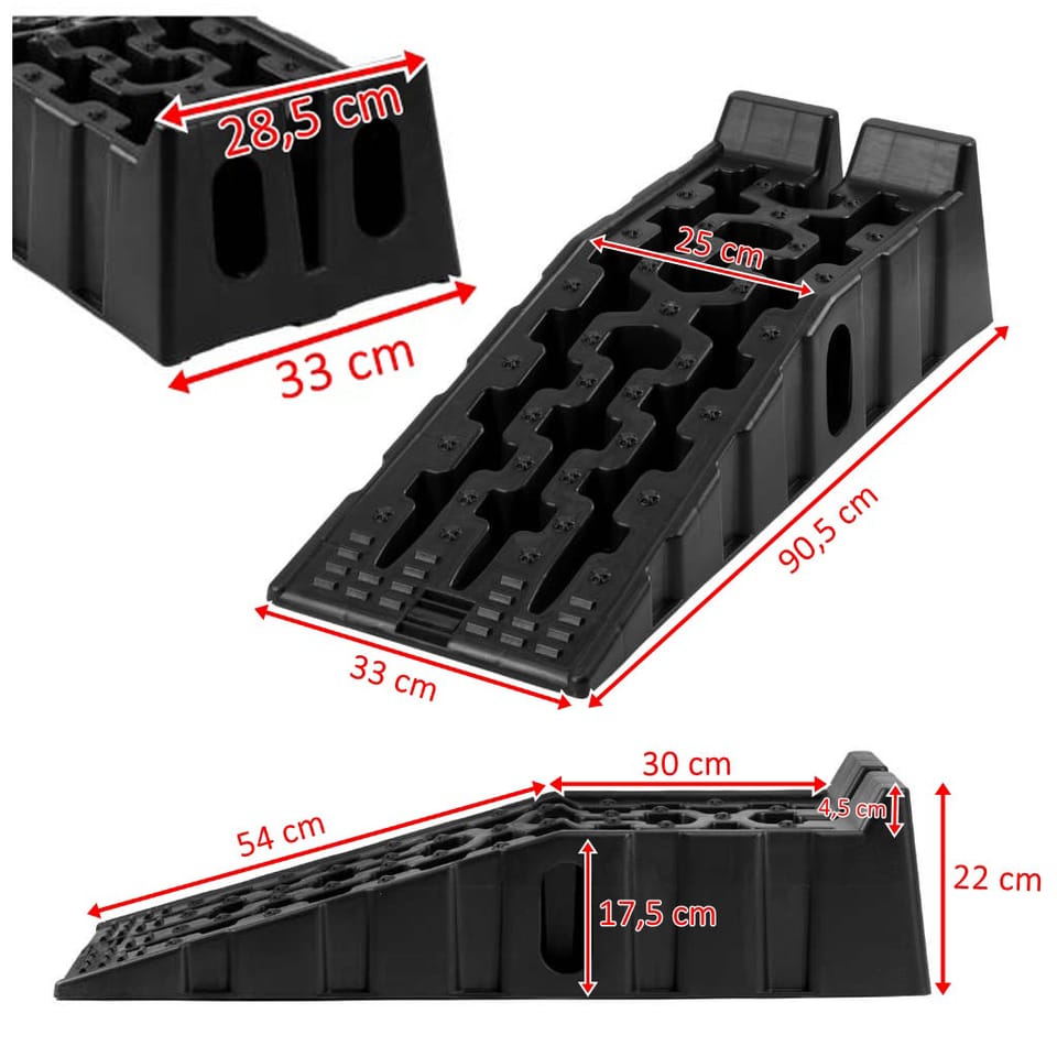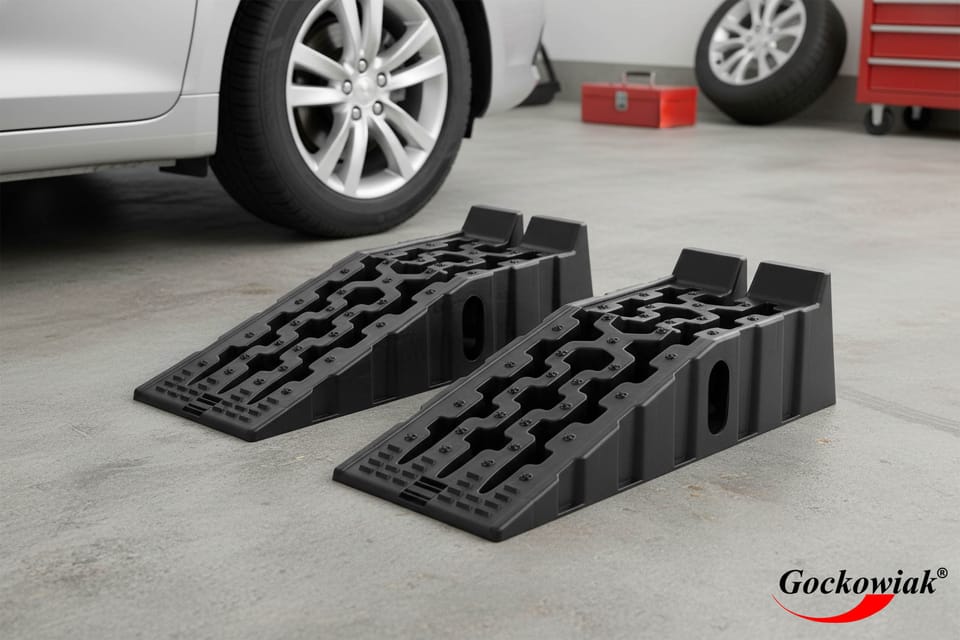 Rampa samochodowa najazdy warsztatowe FIXIT 2 sztLiczba sztuk w zestawie: 2 | Zastosowanie: warsztat, podjazd, garaż | Nośność: 5 ton⭐️ Aż 5 ton nośności⭐️ Wytrzymały materiał PVC⭐️ Zestaw 2 sztuk⭐️ Wygodne uchwyty transportowe⭐️ Zakup od producenta ✨ Serwisuj wygodnie z rampą najazdową Fixit ✨Lekka, a jednocześnie niezwykle wytrzymała rampa najazdowa Fixit marki Gockowiak zapewnia szybki, bezpieczny i stabilny podjazd dla pojazdów do 5 ton, ułatwiając pracę w garażu, warsztacie lub przy domowej konserwacji auta. Dzięki solidnemu PVC i przemyślanej konstrukcji możesz liczyć na wygodę użytkowania, pełną stabilność oraz brak konieczności inwestowania w drogie podnośniki hydrauliczne. Rampa daje pewność, że każdy najazd będzie kontrolowany, a prace serwisowe pod pojazdem — komfortowe i bezpieczne.✍️Specyfikacja:Marka: GockowiakMateriał: PVCNośność: 5 tonLiczba sztuk w zestawie: 2✍️ Wymiary:➡️ Długość: 90,5 cm➡️ Szerokość: 33 cm➡️ Wysokość: 22 cm➡️ Wysokość do części postojowej: 17,5 cm➡️ Długość podjazdu: 54 cm➡️ Długość części postojowej: 30 cm➡️ Wysokość odbojnika: 4,5 cmInformacje dodatkowePrzedstawione kolory należy traktować poglądowo - mogą odbiegać od rzeczywistych ze względu na różne ustawienia monitorów oraz proces obróbki zdjęć. Rzeczywiste wymiary mogą się różnić od podanych wyżej. Tolerancja błędów może wynosić +/- 5%. Marka:GockowiakKod produktu:069938MGKod EAN:5905523069938Cechy dodatkowe:Wysoki próg zabezpieczający, antypoślizgowe nakładki, specjalne żłobienia, łagodny kąt najazduMaksymalny udźwig:5 tonPrzeznaczenie:Dostęp do podwozia pojazdu, przeprowadzenie praz serwisowych
