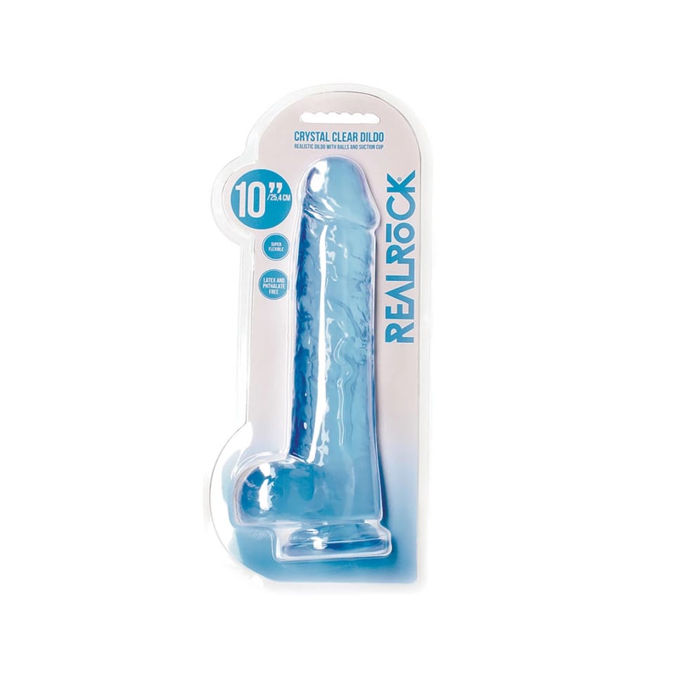 RealRock Crystal Clear – Transparentny model anatomiczny z jądrami, 25,4 cm