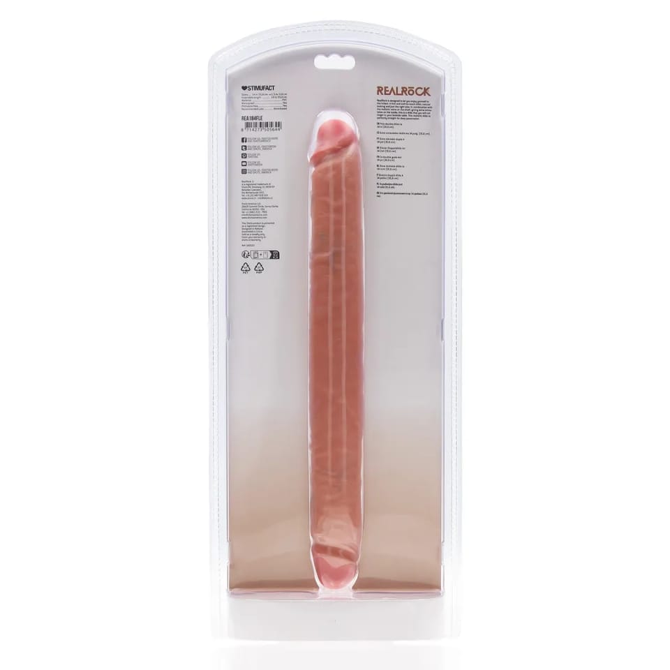 RealRock Model Dwustronny 35,6 cm to zaawansowana forma anatomiczna zaprojektowana z myślą o maksymalnej funkcjonalności. Dzięki elastycznemu i miękkiemu materiałowi, model ten doskonale dopasowuje się do potrzeb użytkownika, zachowując jednocześnie odpowiednią jędrność. Produkt charakteryzuje się naturalnie odwzorowaną strukturą powierzchni oraz realistycznymi detalami, takimi jak zaznaczone żyłkowanie, co podnosi walory techniczne i użytkowe.