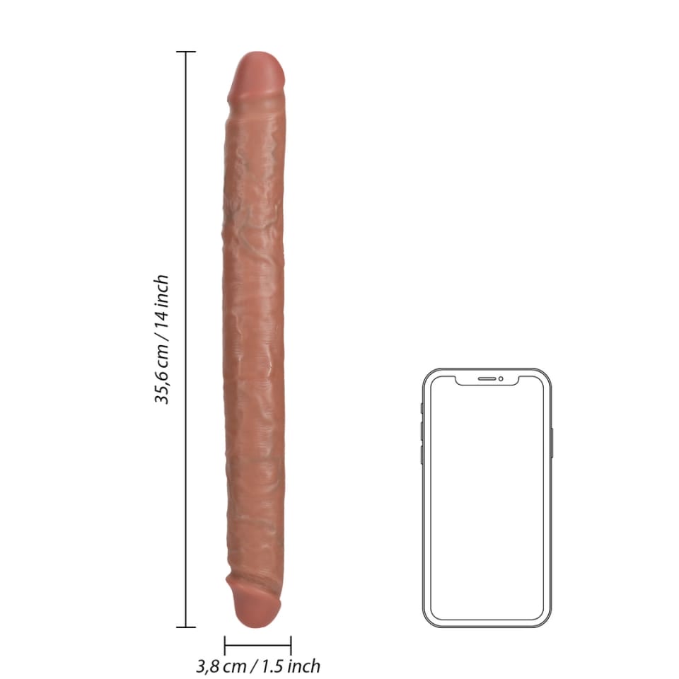 RealRock Model Dwustronny 35,6 cm to zaawansowany produkt wykonany z wysokiej jakości materiału, ktory łączy w sobie elastyczność i odpowiednią twardość. Model ten został zaprojektowany z myślą o wszechstronnym zastosowaniu i zapewnieniu komfortu podczas użytkowania. Dzięki dwustronnej konstrukcji oferuje funkcjonalność i rożnorodność wyboru, a anatomiczny kształt oraz teksturowana powierzchnia podkreślają jego praktyczne walory techniczne.