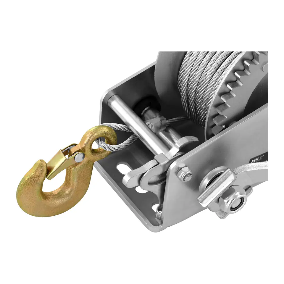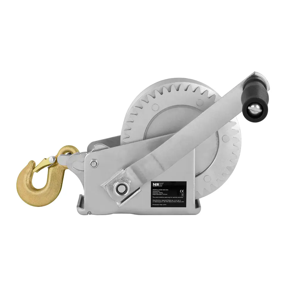 Praktyczna ręczna wyciągarka korbowa jest w stanie uciągnąć obiekty o wadze do 1200 kg, jeżeli znajdują się na kołach. W przypadku przedmiotów leżących i pływających maksymalny udźwig wynosi odpowiednio 450 kg oraz 950 kg. Dzięki zastosowaniu przyłożenia 3,5:1, sprzęt skutecznie zamienia siłę mięśni na siłę ciągnącą, co pozwala na płynne korzystanie z wyciągarki. Pewny chwyt gwarantuje obrotowy uchwyt zamontowany na korbie.