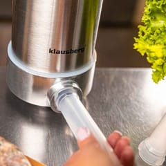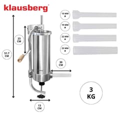 Pionowa nadziewarka do kiełbas Klausberg KB-7926 to praktyczne i solidne urządzenie, które pozwala w prosty sposób przygotować domowe wyroby mięsne. Wykonana z wysokiej jakości stali nierdzewnej, gwarantuje trwałość, higienę i wygodę użytkowania. Pojemność 3 kg sprawia, że jest idealna zarówno do przygotowania mniejszych partii, jak i większych porcji kiełbas, kabanosów czy innych domowych wyrobów. Dzięki pionowej konstrukcji napełnianie osłonek jest wyjątkowo wygodne i równomierne, a stabilne mocowanie zapewnia bezpieczną pracę.