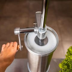 - Ręczna obsługa z wygodną korbką i drewnianym uchwytem