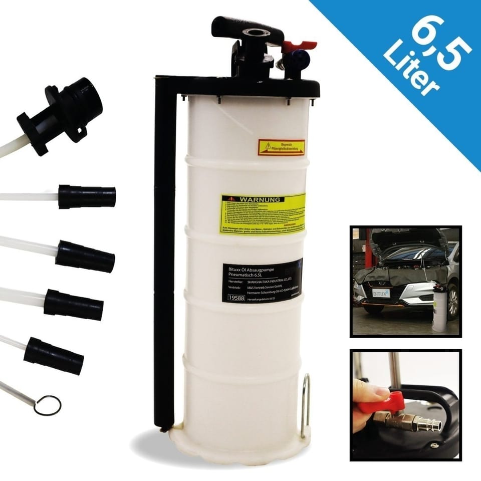 to praktyczne narzędzie, które ułatwia szybki, czysty i wygodny olejowy serwis pojazdów i maszyn. Zbiornik o pojemności 6,5 litra pozwala na efektywne odsysanie oleju silnikowego oraz innych płynów bez konieczności demontażu śruby spustowej.