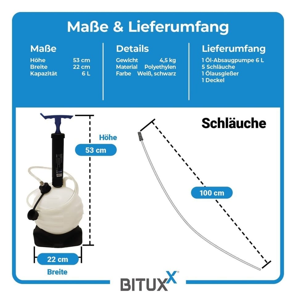 BITUXX Ręczna pompa do odsysania oleju 6 L - uniwersalna ręczna pompa absorpcyjna