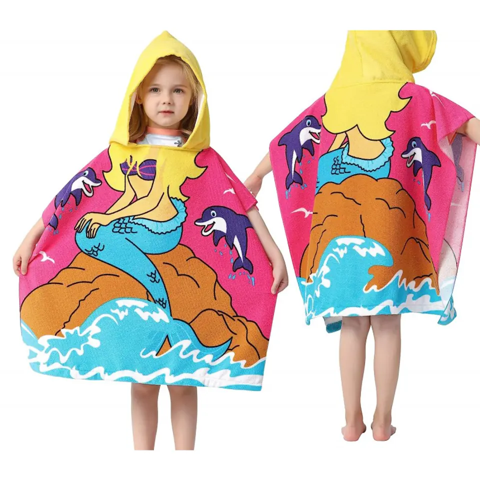 Wyróżnij się, tego lata stylowym ręcznikiem plażowym dla dziecka Oryginalny wzór spodoba się najmłodszym użytkownikomWspaniale nada się na prezent lub jako wyposażenie niezbędnika na wakacyjny wyjazd.Wymiary:Wysokość (bez kaptura) - 58 cmszerokość - 57 cm Materiał: PoliesterGramatura: 250 g/m2Waga: 180 g