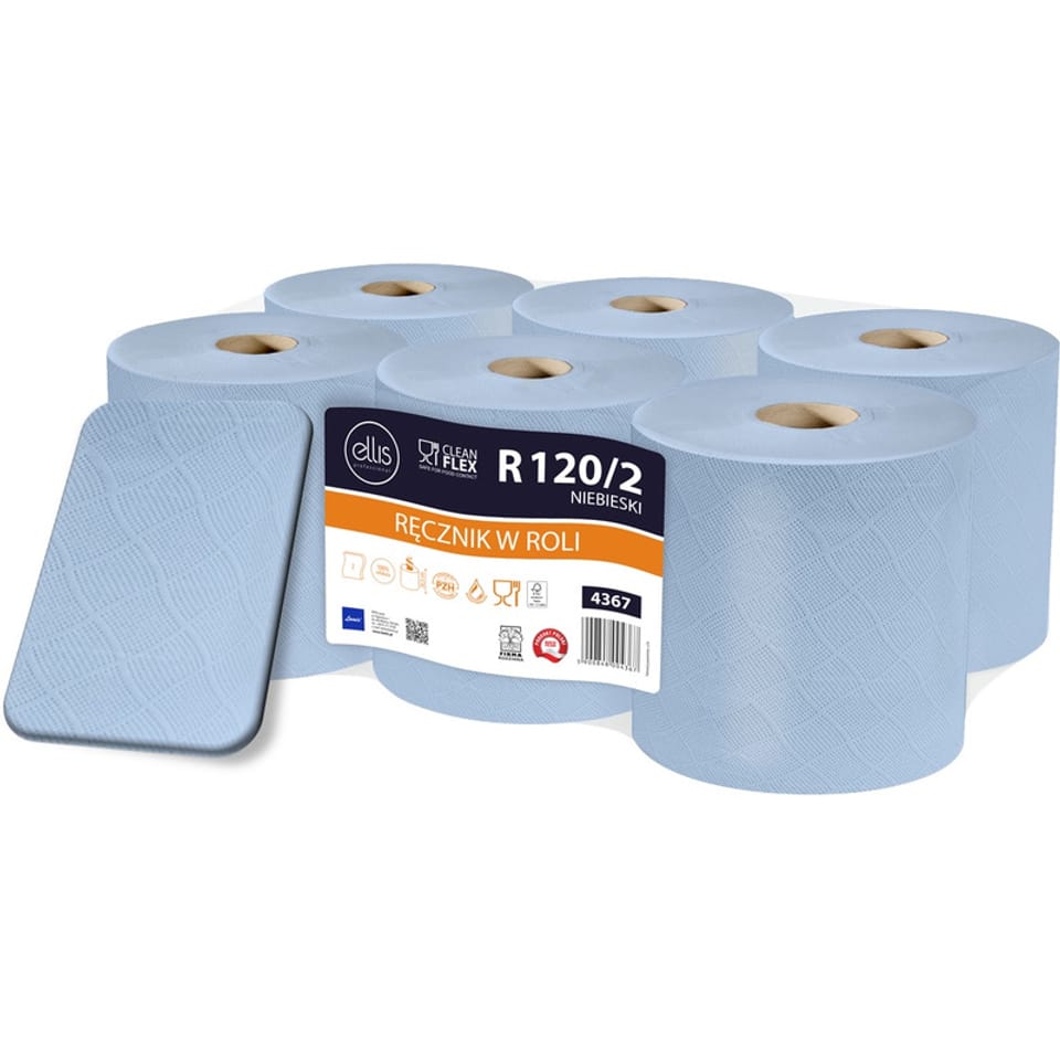 * ręczniki w rolce ELLIS LAMIX * wodotrwałe * posiadające wysokie właściwości absorpcyjne * pochłanaiają wszelkie płyny * służą do wycierania i czyszczenia różnych powierzchni * można nimi wycierać ręce * dopuszczone do krótkotrwałego kontaktu z żywnością * wykonane w 100% z celulozy posiadajacej atest PZH (PZH - atest higieniczny Narodowego Instytutu Zdrowia Publicznego - Państwowego Zakładu Higieny) * certyfikat FSC? (FSC - certyfikat poświadczający, że drewno na papier zostało pozyskane w wyniku odpowiedzialnego gospodarowania i pochodzi z legalnych źródeł) * do stosowania w pomieszczeniach o zwiększonym natężeniu użytkowania * zastosowanie w branżach: HoReCa ((HO - hotel, RE - restaurant, CA ? cafe) HORECA ? łączne określenie sektora hotelarskiego oraz gastronomicznego - używane fachowo w krajach BENELUKSU, spotykana także w innych krajach ? w raporcie UE dotyczącym konkurencyjności turystyki z 2009 roku do branży zaliczono działalność hoteli, restauracji, barów, kantyn oraz firm kateringowych, firm sprzątających, działów utrzymania ruchu, myjni samochodowych oraz firm, biorących udział w przetargach na środki utrzymania czystości), Medi & SPA (nazywane też medical SPA albo medyczne SPA), w przemyśle oraz rolnictwie * ilość warstw: 2 * gramatura: 2 x 18 g/m2 * kolor: niebieski * długość papieru na rolce: 120 m * perforacja co 35 cm * średnica rolki: 19 cm * wysokość rolki: 20,4 cm * jednostka sprzedaży 6 sztuk * marka ELLIS PROFESSIONAL została stworzona, by zadowolić najbardziej wymagających klientów - w ofercie marki znajdują się ręczniki w roli, czyściwa przemysłowe, papiery toaletowe, ręczniki typu V, podkłady medyczne oraz serwetki - artykuły z tej serii wykonane są w stu procentach z najwyższej jakości celulozy, dzięki czemu charakteryzują się wyjątkową miękkością i chłonnością - do produkcji wykorzystuje się nowoczesną technologię klejenia wielu warstw papieru, która zapewnia dodatkową elastyczność i nie rozwarstwia się w trakcie użytkowania, nawet pod wpływem wilgoci - dodatkowo produkty posiadają atrakcyjne tłoczenie w oryginalnych wzorach