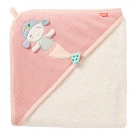 Ręcznik z Kapturem, Syrenka z kolekcji: MorzeChłonny ręcznik dziecięcy z kapturkiem i uroczą aplikacją Syrenki z kolekcji: Morze. Bardzo puszysty, w miękkiej bieli i szarości,o wymiarach 80 x 80 cm, wzbogacony kapturkiem, który ogrzeje i zabezpieczy główkę maleństwa. Miękki ręcznik kąpielowy delikatnie otula dziecko i chroni przed zimnem i przeciągami. Codzienne użytkowanie i częste pranie nie mogą zaszkodzić miękkiemu ręcznikowi frotte, który wykonano z bardzo chłonnego materiału. Z łatwością można go zawiesić do wyschnięcia za pomocą małej pętelki.Chłonny ręcznik dziecięcy z kapturkiem i uroczą aplikacją Syrenki z kolekcji Morze.Chroni przed zimnem i przeciągami po długiej kąpieli lub na plaży.Idealny jako prezent z okazji narodzin, chrztu lub jako prezent urodzinowy dla niemowląt i małych dzieci.Materiał zewnętrzny: frotte (78% bawełna, 22% poliester), muślin (100% bawełna), welur (100% poliester).Ręcznik można prać w pralce w temperaturze 60deg;C.Dla niemowląt i małych dzieci od 0+ miesiąca życia.Wymiary produktu: 80 cm x 80 cm.Wymiary opakowania: 34 cm x 29 cm x 2,5 cm.Wszystkie produkty niemieckiej marki FEHN są bezpieczne dla dzieci od 0 lat.Wykonane są z najlepszej jakości materiałów.Spełniają normy EN71, CE, przetestowane pod kątem bezpieczeństwa przez niezależne instytuty badawcze.