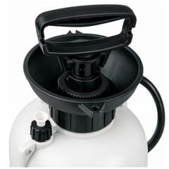 Duży otwór wlewowy z wbudowanym lejkiem pozwala na szybkie i czyste napełnianie zbiornika bez ryzyka rozlania cieczy. Półprzezroczysty zbiornik wyposażony w czytelną skalę umożliwia łatwą kontrolę poziomu płynu podczas pracy. Dodatkowo wzmocnione dno zbiornika poprawia stabilność opryskiwacza oraz zwiększa jego trwałość i odporność na intensywne użytkowanie.