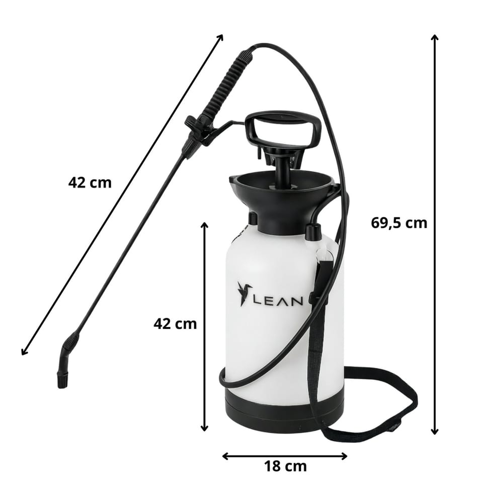 Opryskiwacz ciśnieniowy LEAN 5L to narzędzie ekonomiczne i praktyczne, które pozwala na oszczędne zużycie wody oraz środków chemicznych, zapewniając jednocześnie równomierny i skuteczny oprysk.