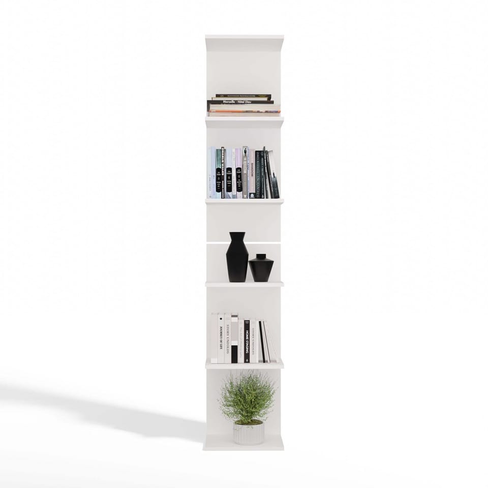Regał 6P to minimalistyczny i funkcjonalny mebel, który świetnie odnajdzie się w salonie, biurze, pokoju młodzieżowym lub domowej biblioteczce. Dzięki lekkiej, nowoczesnej formie i neutralnemu białemu kolorowi, łatwo dopasujesz go do wielu aranżacji wnętrz.