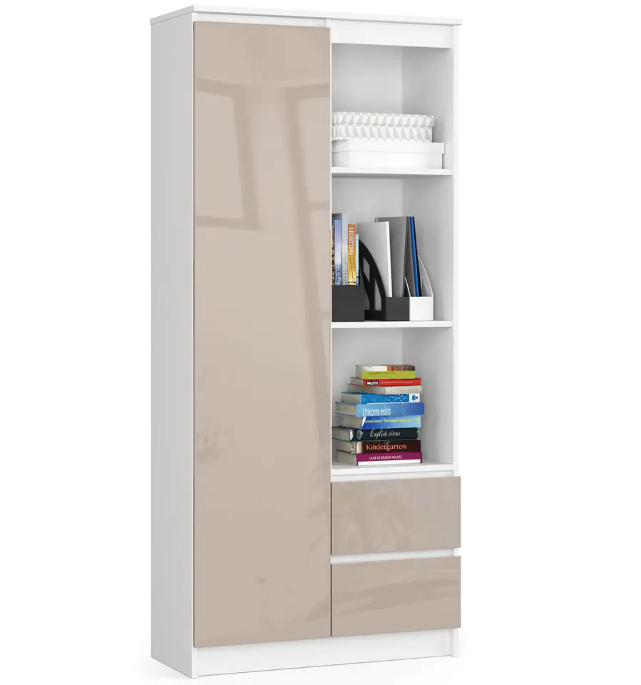 Regał biurowy biały / cappuccino to model o wysokim stopniu funkcjonalności. Oferuje swoim użytkownikom aż 7 półek i 2 szuflady, przy czym 3 z nich są odkryte, a 4 znajdują się za drzwiami. Dużym plusem są 2 dodatkowe, pojemne szuflady. Dzięki tak wielu miejscom do przechowywania można wygodnie umieścić w regale całkiem sporo wiele różnych rzeczy, co jest bardzo komfortowe dla użytkowników.