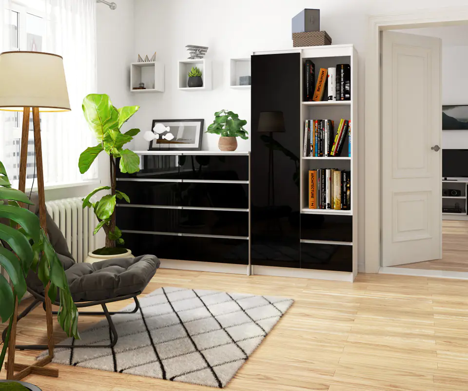 REGAŁ BIUROWY R 80 cm CLP R11 PK BIAŁY / CZARNY POŁYSK