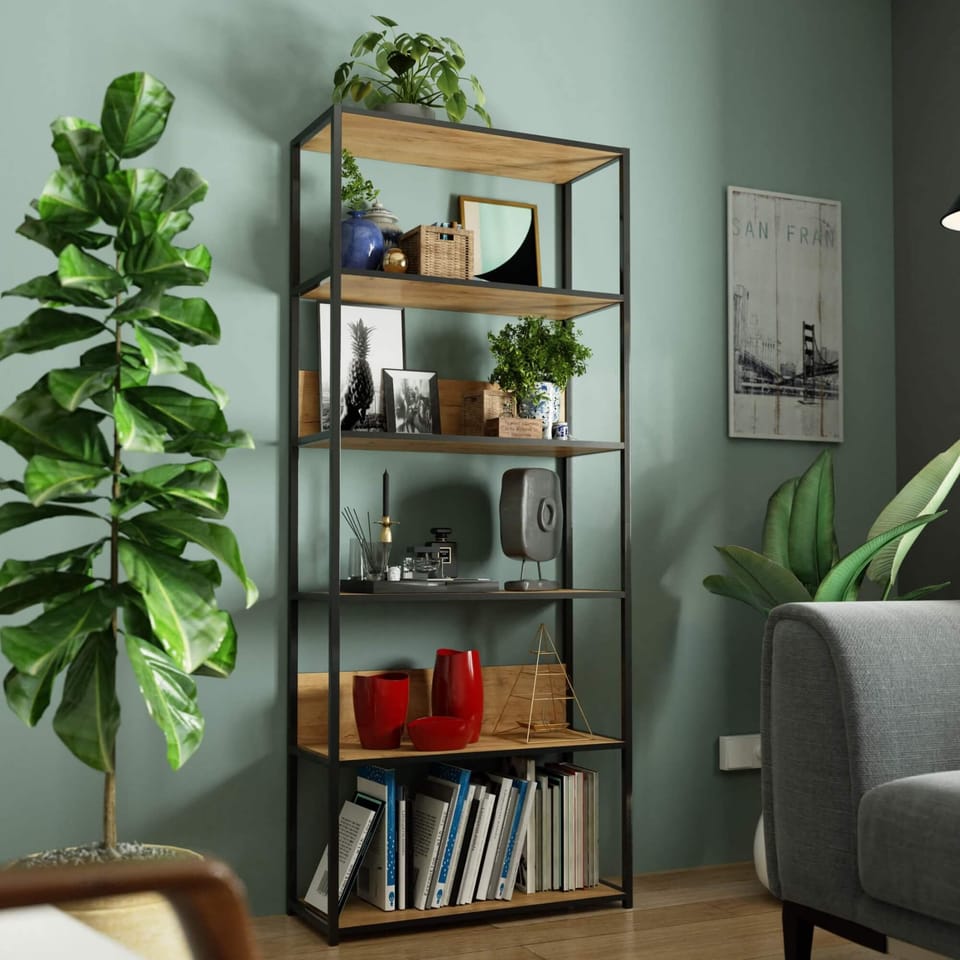 Regał industrialny metalowy to praktyczny i nowoczesny mebel, który sprawdzi się zarówno w salonie jak i biurze. Stelaż w kolorze czarnym. Półki regału zostały wykonane z płyty laminowanej o grubości 16 mm w kolorze dąb craft. To trwały i wytrzymały materiał, wyróżniający się wysoką odpornością na ścieranie. Krawędzie zostały dodatkowo zabezpieczone obrzeżem ABS, dzięki czemu mebel cały czas będzie się dobrze prezentował, nawet przy bardzo intensywnym codziennym użytkowaniu. Całość prezentuje się bardzo nowocześnie.