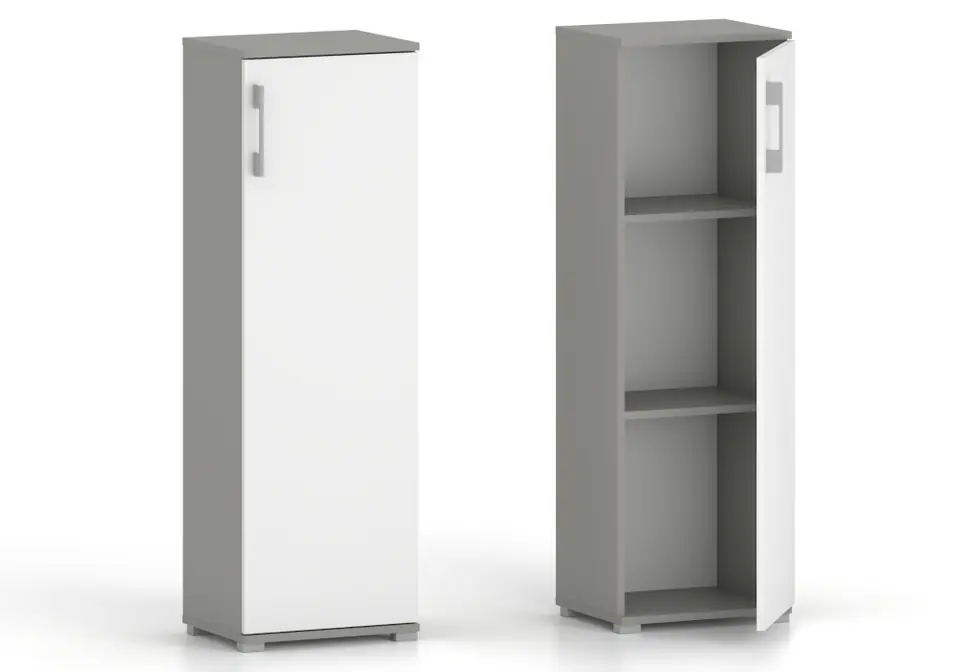 Regał komoda biurowa Pola 1D 110 x 40 cm szary z białym drzwiami