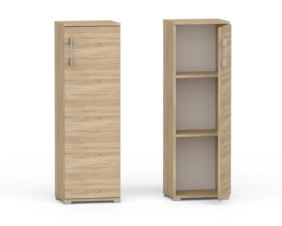 Regał Pola 30 cm 1D Wymiary:wysokość: 110 cmszerokość: 30 cmgłębokość: 32 cm lub 40 cm Wysokość półek: 33,5 cm Szafki wykonane z Polskiej płyty laminowanej 16 mm, obrzeża oklejone PCV Plecy wykonane z płyty HDF 3mm. Możliwośc montażu bez nóżek.Seria Pola występuje w rożnych szerokościach od 30 do 80 cm. Wersja z drzwiami lub bez.Do kompletu można również dobrać szafy o wysokości 215 cm. Paczki wysyłamy kurierem do samodzielnego montażu, wraz z szczegółowa instrukcja