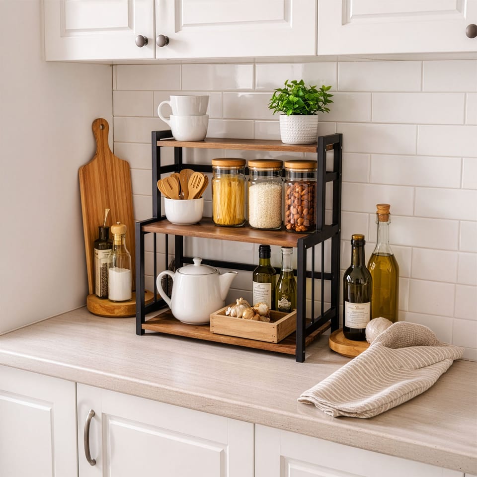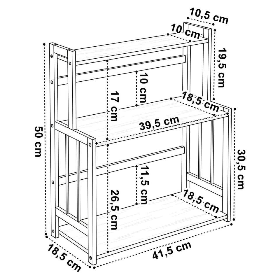 Regał kuchenny na przyprawy CEZAR Wood BrownModel: Cezar | Wzór: Wood Brown | Przeznaczenie: Kuchnia, biuro⭐️Idealny na przyprawy⭐️Trzy pojemne półki⭐️Nowoczesny loftowy design⭐️Idealny na przyprawy⭐️Zakup od producenta⚙️ Specyfikacja techniczna:Materiał: drewno bambusowe, laminowane płytyWzór: Wood brownLiczba półek: 3Montaż: do samodzielnego montażuMaksymalne obciążenie dużej półki: 4 kgMaksymalne obciążenie małej półki: 2 kgMaksymalne całkowite obciążenie: 10 kg☑️ Wymiary:Wysokość regału: 50 cmSzerokość regału: 41,5 cmGłębokość regału: 18,5 cmSzerokość półek: 39,5 cmWysokość od środkowej do górnej półki: 17 cmGłębokość górnej półki: 10 cmInformacje dodatkowePrzedstawione kolory należy traktować poglądowo - mogą odbiegać od rzeczywistych ze względu na różne ustawienia monitorów oraz proces obróbki zdjęć. Rzeczywiste wymiary mogą się różnić od podanych wyżej. Tolerancja błędów może wynosić +/- 5%. Marka:GockowiakKod produktu:333426MGKod EAN:5902340333426Wzór:wood brownWysokość: 50 cmSzerokość:41,5 cmMateriał konstrukcji:drewno bambusowe, płyty laminowaneStyl:Loft, industrial, vintage