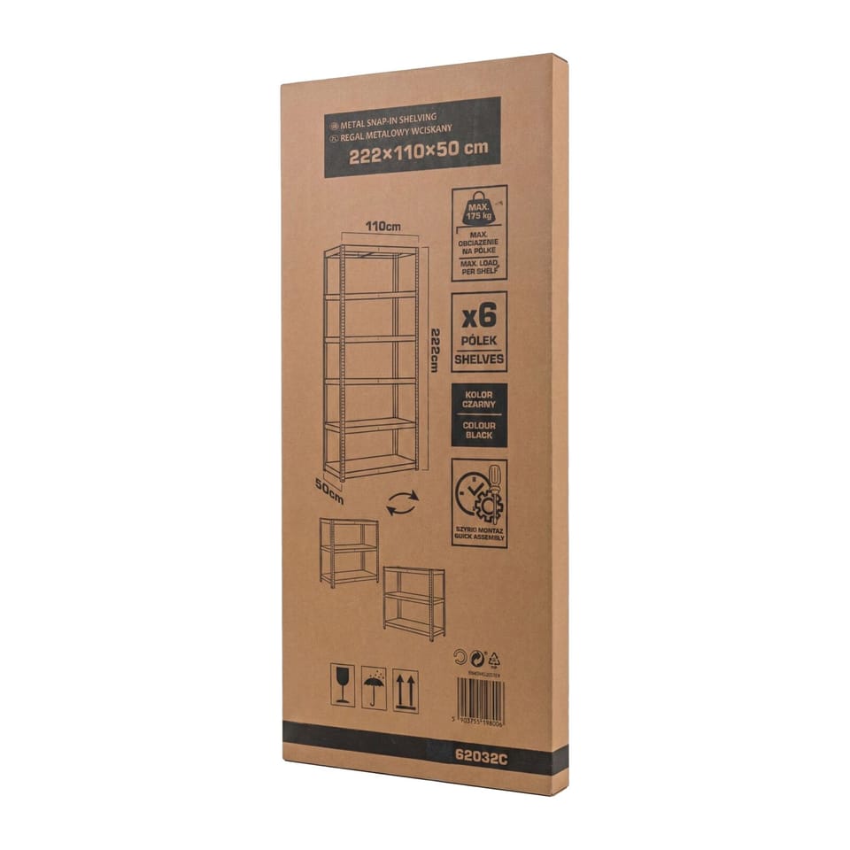 - Stabilna konstrukcja i nośność 175 kg na półkę gwarantują bezpieczne użytkowanie