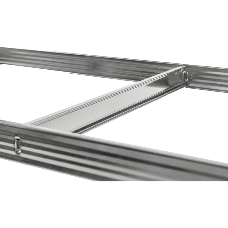 - Regał dostępny jest w dwóch estetycznych wariantach — ocynkowanym (62032) oraz malowanym proszkowo na czarno (62032C) — dzięki czemu można go dopasować do charakteru przestrzeni