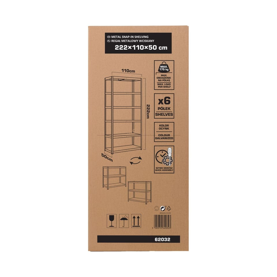 - Stabilna konstrukcja i nośność 175 kg na półkę gwarantują bezpieczne użytkowanie