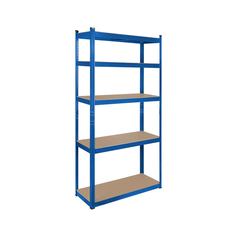 Wymiary: 180 x 90 x 40 cmLiczba półek: 5 szt.Półki z płyty MDFWsporniki środkowe półekProfile galwanizowaneGrubość profili: 0,55 mmNakładki ochronne w zestawie 8 szt.Maksymalne obciążenie półki: 150 kg (przy równomiernym obciążeniu)Maksymalne obciążenie łączne: 750 kgSposób montażu: bezśrubowy (na wcisk)Regał należy przytwierdzić do ścianyKolor: niebieski ocynk