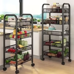 - Regał jest wyjątkowo pojemny i praktyczny. Wyposażony w cztery przestronne koszyki, oferuje mnóstwo miejsca na różnorodne przedmioty, takie jak książki, akcesoria kuchenne, narzędzia czy kosmetyki. Dodatkowym atutem regału są cztery haczyki, które umożliwiają zawieszenie przyborów kuchennych, ręczniczków, ścierek lub innych drobnych przedmiotów, które warto mieć zawsze pod ręką.