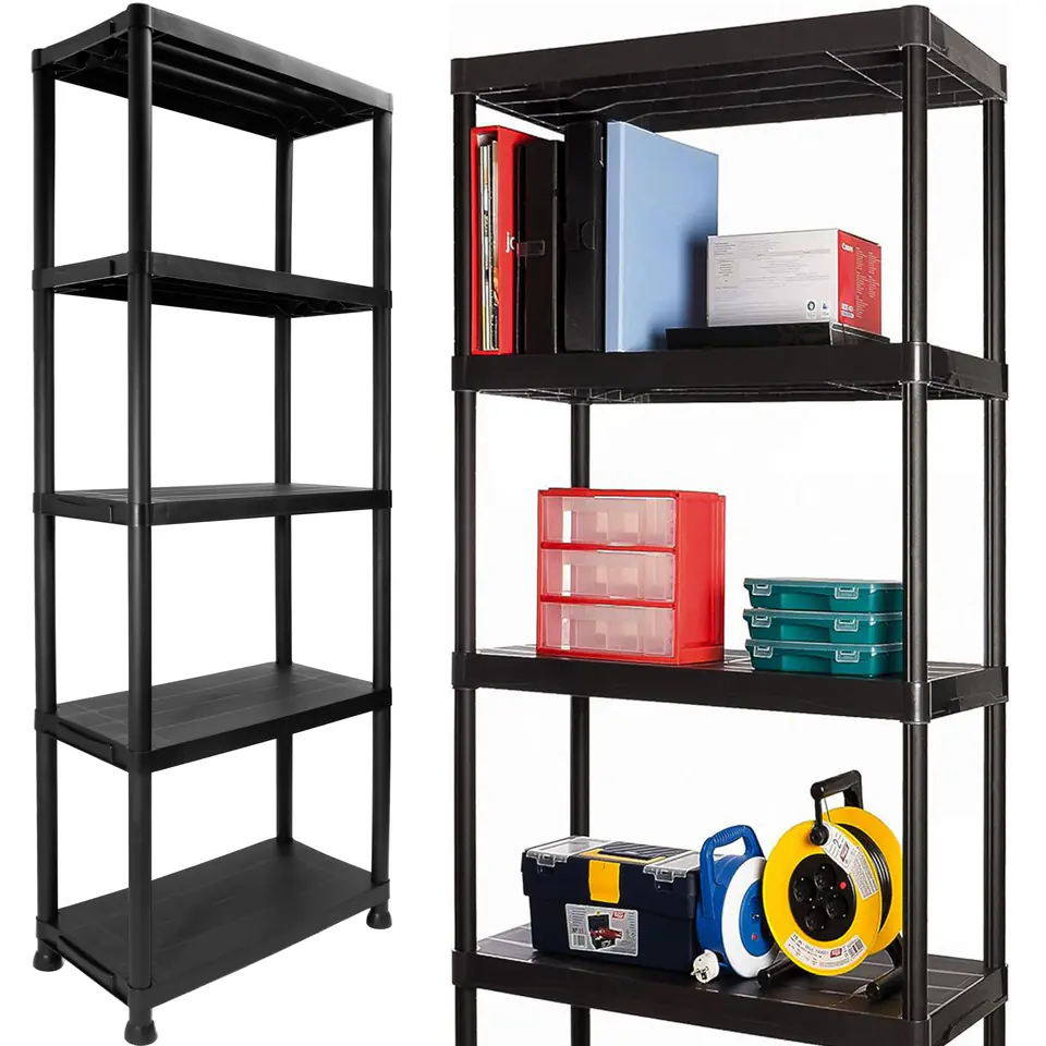 Regał magazynowy IRVING 5 poziomów czarny⭐Do garażu, piwnicy, spiżarni⭐5 półek 125kg⭐Mocne tworzywo⭐Łatwy montaż⭐Zakup od producenta ➡️Praktyczny i uniwersalnyRegał Irving to uniwersalne, praktyczne i solidne rozwiązanie do przechowywania. Wykonany jest z wytrzymałego tworzywa sztucznego. Jego pięć solidnych półek, każda wytrzymująca obciążenie do 25 kg, czynią go doskonałym wyborem zarówno do zastosowań profesjonalnych, jak i domowych. Regał ten ma szerokie zastosowanie, doskonale sprawdzi się jako regał magazynowy, oferując wytrzymałość i stabilność potrzebną do przechowywania ciężkich przedmiotów. Idealnie spełni funkcję regału garażowego, jego solidna konstrukcja jest idealna do organizowania narzędzi, akcesoriów i sprzętu. W piwnicy czy spiżarni, regał Irving umożliwia efektywne wykorzystanie przestrzeni, zapewniając łatwy dostęp do przechowywanych przedmiotów. Co więcej, wyróżnia się on prostotą montażu dzięki swojej konstrukcji opartej na systemie wciskanym. Pozwala to na szybki, łatwy i intuicyjny montaż bez konieczności używania narzędzi. Ta cecha sprawia, że jest idealnym rozwiązaniem dla osób ceniących sobie wygodę i efektywność w organizacji przestrzeni. Możliwość błyskawicznego złożenia i rozłożenia regału sprawia, że jest on wyjątkowo praktyczny w różnorodnych warunkach, dostosowując się do potrzeb użytkownika zarówno w domu, jak i w miejscach pracy czy wypoczynku, łącząc w sobie trwałość, funkcjonalność oraz estetykę, co czyni go wszechstronnym rozwiązaniem do przechowywania w każdym otoczeniu. Zalety:✅Najwyższa jakość materiałów✅Uniwersalne zastosowanie✅Idealny do magazynu, garażu, piwnicy itp✅Duże obciążenie na półkę✅Solidny i praktyczny✅Kompaktowe wymiary✅Łatwy, szybki i intuicyjny montaż ✔️Specyfikacja:materiał: tworzywo sztuczne (PP)ilość półek: 5maksymalne obciążenie na półkę: 25 kgmaksymalne obciążenie regału: 125 kgtyp regału: wciskanyprzeznaczenie: magazyn, garaż, piwnica, spiżarnia, warsztatwaga: 5,24 kg ✔️Wymiary:wysokość: 171 cmszerokość: 61 cmgłębokość: 31 cmodstęp między półkami: 37 cm UWAGA | Przedstawione kolory należy traktować poglądowo - mogą odbiegać od rzeczywistych ze względu na różne ustawienia monitorów oraz proces obróbki zdjęć • Rzeczywiste wymiary mogą się nieznacznie różnić od podanych w opisie. Tolerancja błędów może wynosić +/- 2 cm