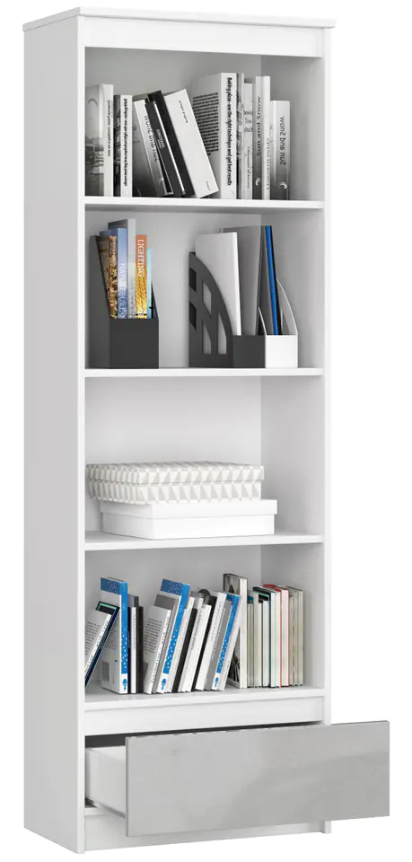 REGAŁ R 60 cm CLP 1 SZUFLADA 4 PÓŁKI BIAŁY / METALIK POŁYSK