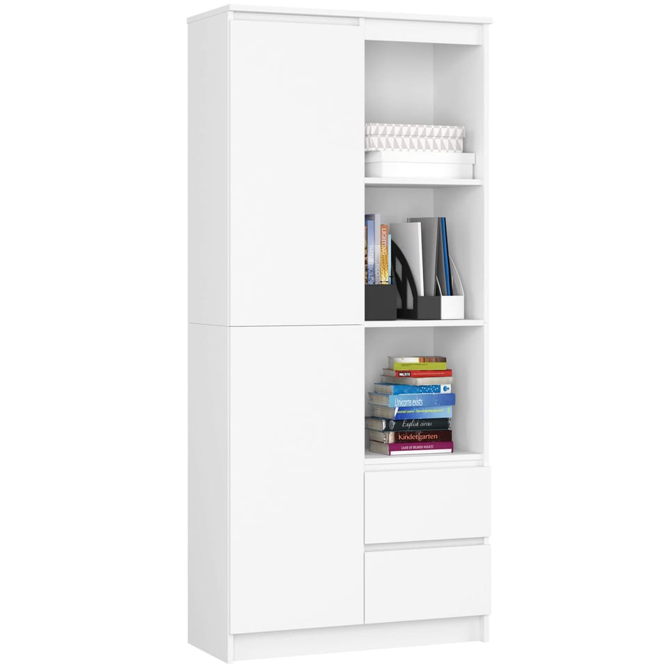 Dobranie odpowiednich mebli do biura jest tak samo ważne, jak urządzenie własnego domu. To w biurze spędzamy sporą część dnia, przyjmujemy klientów. Zatem biuro jest naszą wizytówką, dlatego należy zadbać o to, aby ta przestrzeń była praktyczna, funkcjonalna, ale również estetyczna. Do tego konieczne jest posiadanie przede wszystkim mebli typowo biurowych - biurka i regałów, które pozwolą na zachowanie porządku w gabinecie. Świetnym rozwiązaniem, który łączy w sobie funkcje szafy i regału, jest regał biurowy z naszej oferty. Regał biurowy pozwoli na utrzymanie porządki w dokumentach, jak również akcesoriach biurowych. Dzięki drzwiom możemy zadecydować, co chcemy pokazywać odwiedzającym biuro, a co lepiej ukrywać. Regał w kolorze białym rozjaśni wystrój biura i z łatwością dopasuje się do każdego wystroju. Regał biurowy dopasuje się nie tylko do biura, ale również do przestrzeni domowej, np. pokoju młodzieżowego czy salonu. Regał wykonany jest z płyty laminowanej, odpornej na ścieranie oraz posiada krawędzie pokryte obrzeżem ABS, dzięki czemu mają Państwo gwarancję, że mebel posłuży Państwu przez długie lata w niezmienionym stanie. Górne i dolne drzwi są ze sobą połączone w jedną całość i nie są otwierane oddzielnie.