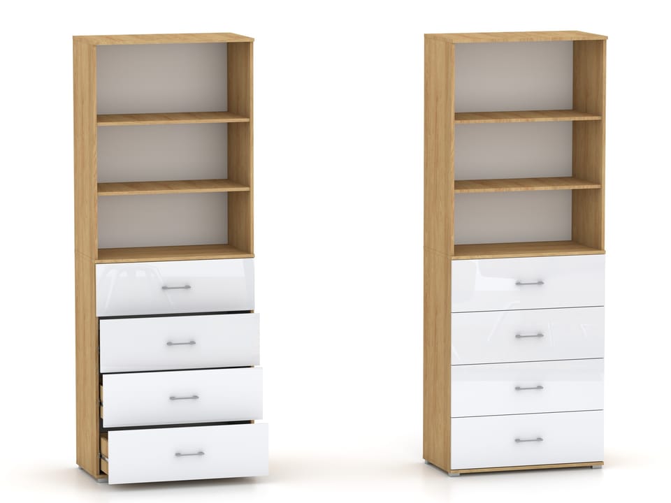 Regał POLA 215 4S3P Nowoczesna Regał z serii POLA z 4 szufladami,Wymiary regału w zależności od wersji: Wysokość:Szerokość: