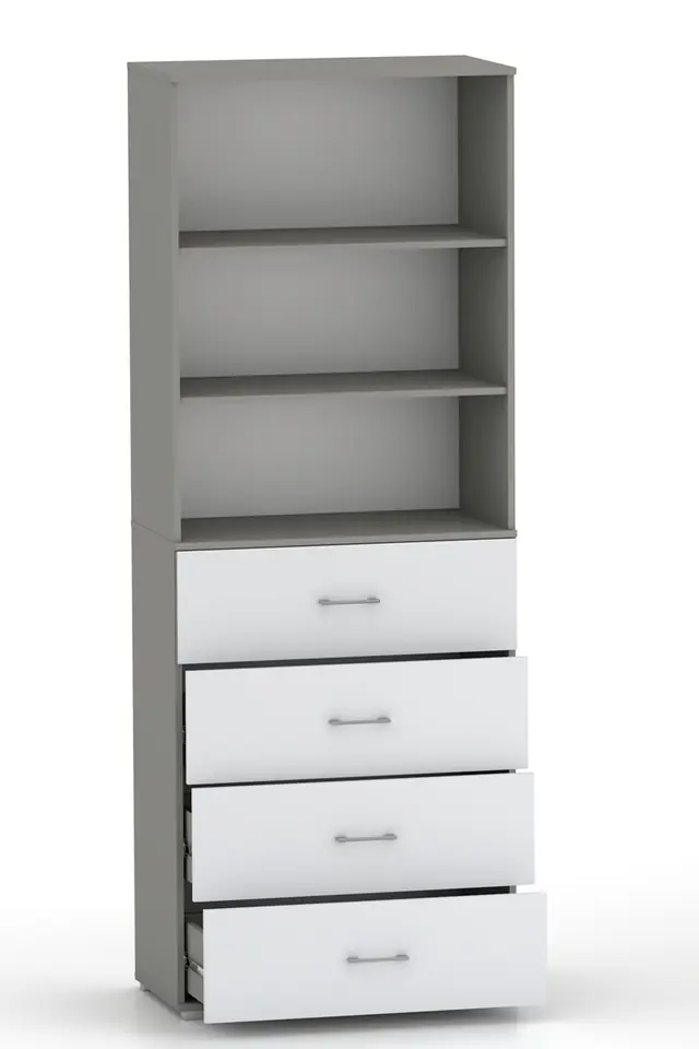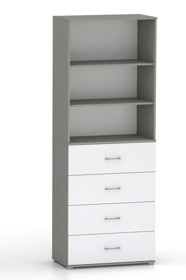 Regał Szafa POLA 215 4S3P - 4 szerokości, Szary z białymi frontami