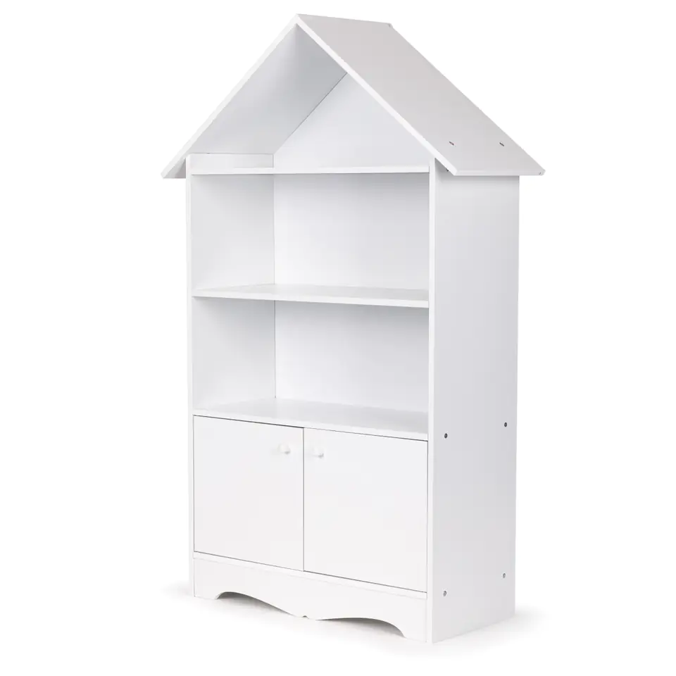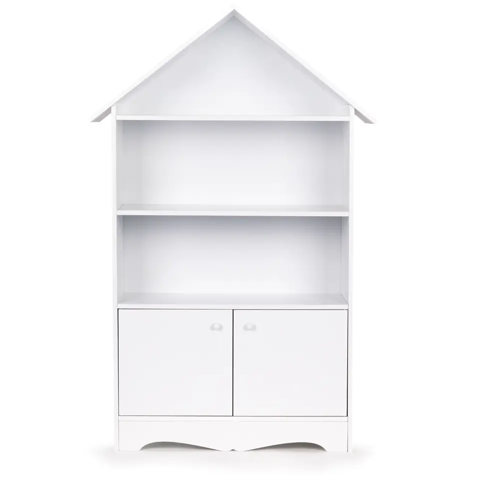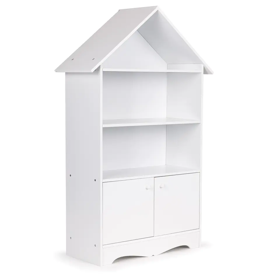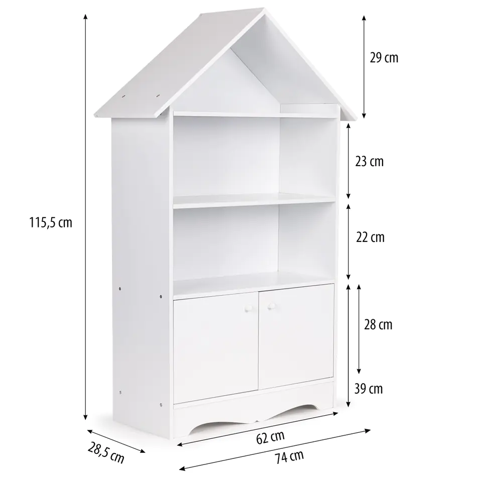 Regał w kształcie domku to mebel, który sprawdzi się w każdym dziecięcym pokoju, dzięki niemu zapanuje tam porządek. Półki i zamykana szafka pomieszczą ulubione książki, zabawki i wszystko to, co Twoja pociecha lubi mieć pod ręką. Jego biały kolor sprawia, że regał idealnie wpasuje się w każdy rodzaj wnętrza.