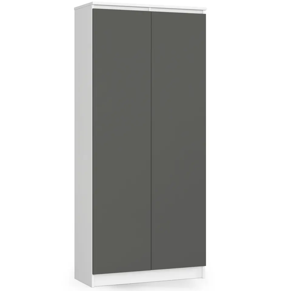 Regał biurowy w wersji szafy R 80 cm CLP z dwoma drzwiami dostępny jest w wariancie kolorystycznym z białymi ścianki i półkami wewnętrznymi oraz drzwiami w kolorze grafitu szarego. Regał ma bardzo uniwersalny charakter, dzięki czemu pasuje do pokojów dziennych czy sypialni, ale także pomieszczeń takich jak gabinety. Szafa tego typu jest idealnym rozwiązaniem do gromadzenia książek, dokumentów i innych produktów wykorzystywanych regularnie. Szafa jest bardzo wygodna w użytkowaniu i pasuje do innych elementów wystroju wnętrz w kolorze wenge.