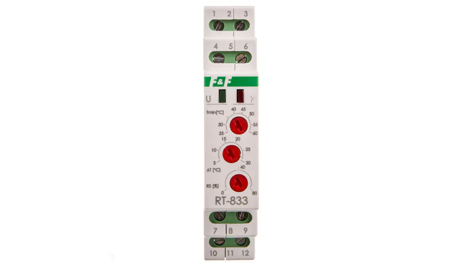 Regulator temperatury z regulacją wentylatora 12-24V DC na szynę RT-833