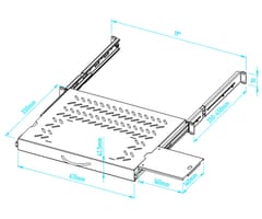 | Wybrane funkcje: | Szuflada wysuwa się na odległość 350 mm względem przednich szyn montażowych Wysuwana półka zapewnia dodatkową przestrzeń dla wygodniejszego operowania myszą Rozstaw szyn montażowych : min. 350 mm, max. 450 mm |