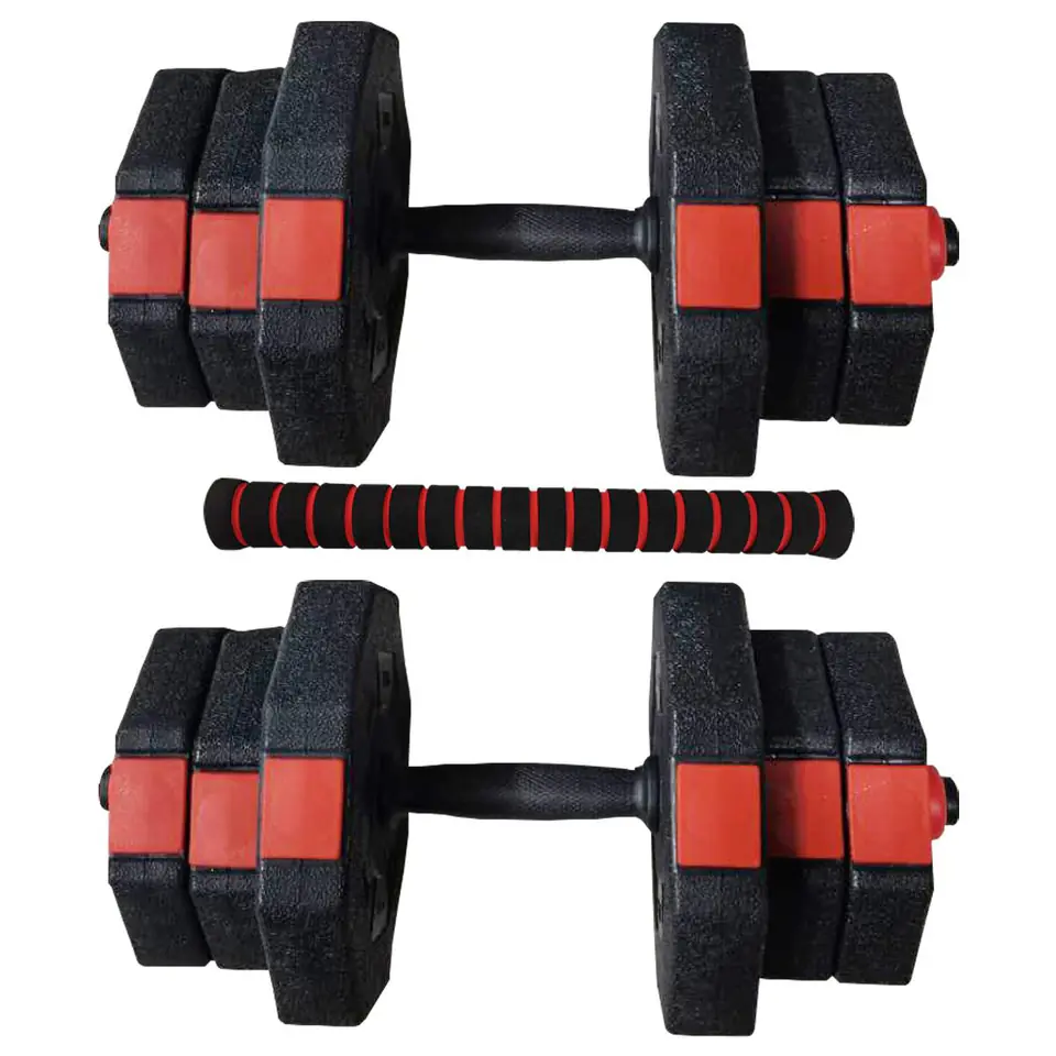 Spal tłuszcz, zwiększ rzeźbę / masę mięśniową i osiągnij wymarzoną sylwetkę w warunkach domowych z REGULOWANYMI HANTLAMI TRENINGOWYMI 2x10KG Z FUNKCJĄ SZTANGI ENERO FIT</>pParametry:
