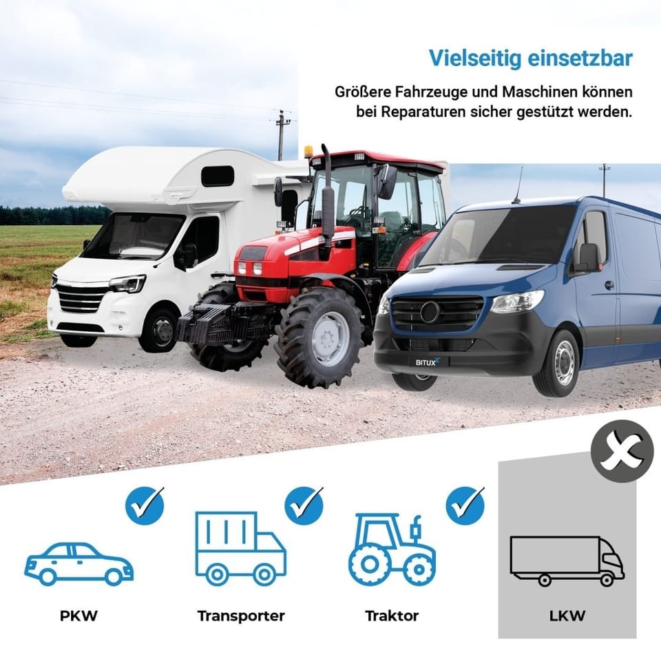 Stabilny i wytrzymały stojak podporowy o udźwigu 12 ton to idealne wyposażenie do prac serwisowych przy samochodach osobowych, dostawczych, ciągnikach, maszynach rolniczych oraz sprzęcie ciężkim. Konstrukcja wykonana z masywnej, proszkowo malowanej stali zapewnia najwyższy poziom bezpieczeństwa nawet przy intensywnym użytkowaniu i dużym obciążeniu.