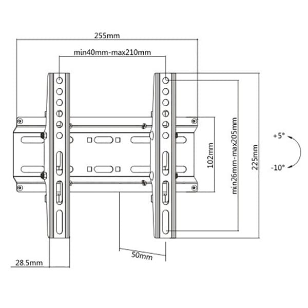 Regulowany uchwyt KL25-22T, 23"-42", 35 kg max, 75x75 - 200x200 VESA, 50 mm, czarny
