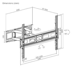 Regulowany uchwyt LPA78-466, 37"- 80", 40 kg max, 100x100 - 600x400mm VESA, 67-355mm, czarny