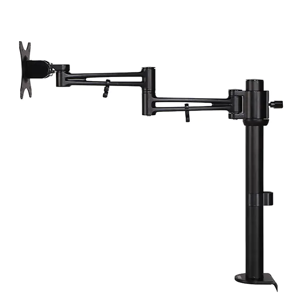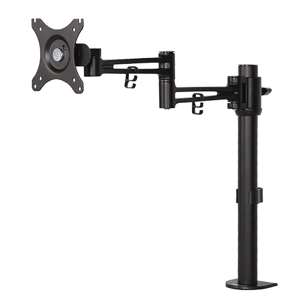 Uchwyt do monitora MS002MS004 to uniwersalny uchwyt do zamocowania monitora, którego przekątna wynosi od 17 do 30” wyposażonego w mocowanie VESA 75x75mm lub 100x100mm. Mocne ramie wyposażone zostało w złącza przegubowe z zaciskiem śrubowym.Wielostopniowa regulacja umożliwia bardzo wygodne umiejscowienie monitora względem użytkownika. Regulacja odchylenia uchwytów VESA oraz PIVOT gwarantują iż każdy użytkownik będzie mógł dogodnie wyregulować ustawienie urządzenia na swoim stanowisku pracy lub biurku dla gracza. Stojak można zamocować do biurka za pomocą silnego zacisku, minimalna grubość blatu to 20mm, max to 100 mm.Ramiona również zostały wyposażone w haczyki utrzymujące kable. Specyfikacja- Nośność max 10kg- Max wielkość monitorów 30”- Mocowanie VESA 75x75mm i 100x100mm- Kolor czarny