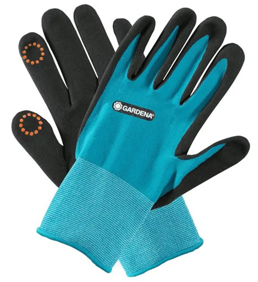 Rękawice do prac pielęgnacyjnych w rozmiarze M od GARDENA to idealny towarzysz podczas takich prac w ogrodzie jak sadzenie roślin, spulchnianie gleby czy pielenie. Podczas prac związanych z poruszaniem gleby, wilgoć odgrywa dużą rolę. Dlatego ogrodnicy z pewnością ucieszą się z ochrony zapewnianej przez nitrylową powłokę na spodniej stronie rękawicy.