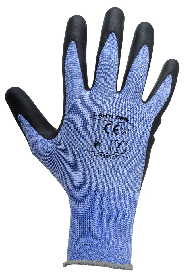 RĘKAWICE LATEKS CZARNO-NIEB. L211607P, KARTA, "7", CE, LAHTI