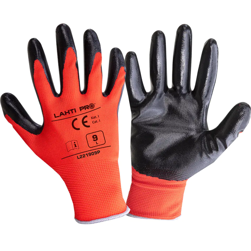 RĘKAWICE NITR. CZERW.-CZARNE L221907P, 12PAR, "7", CE, LAHTI