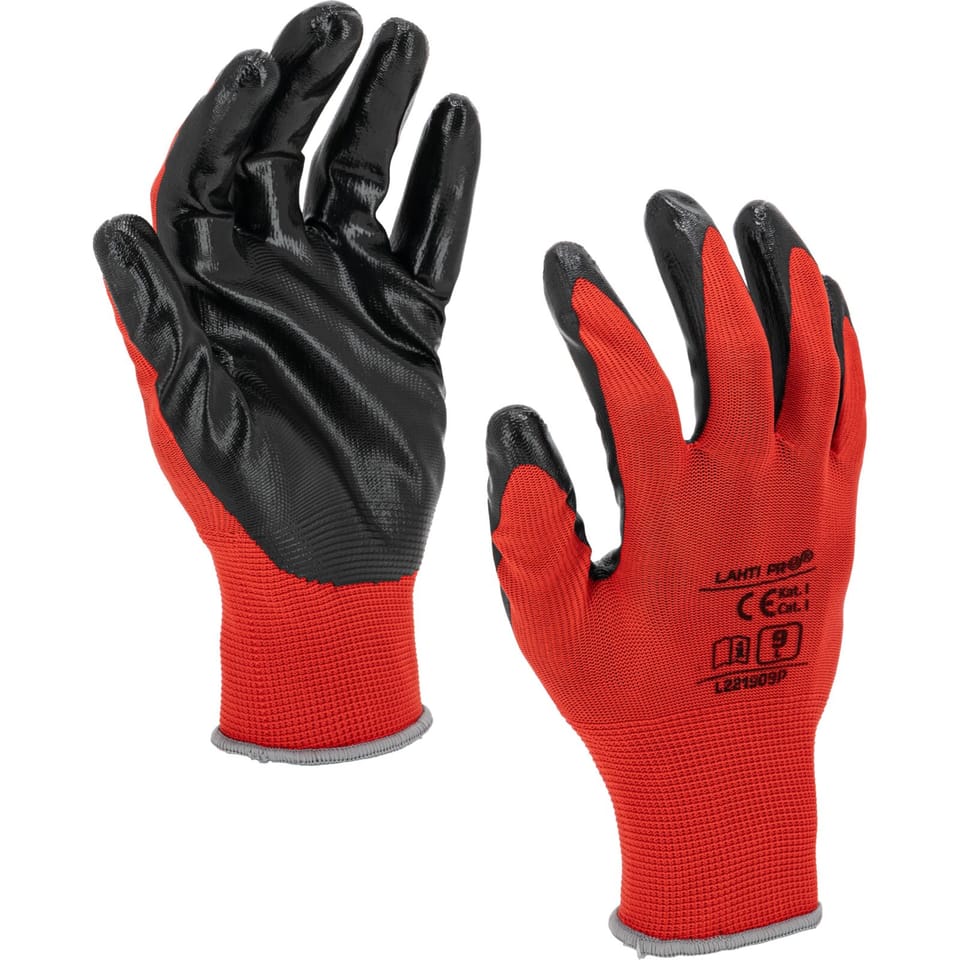 RĘKAWICE NITR. CZERW.-CZARNE L221911P, 12PAR, "11", CE,LAHTI